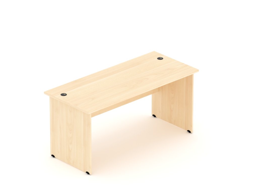 Kvalitní kancelářský stůl zátěžový. Vyroben z nejkvalitnějších materiálů. Dřevotříska je stlačena na nejsilnější možnou hustotu E1. Dvě kabelové průchodky zdarma. Díry na průchodky jsou již v ceně a jsou automaticky umístěny na stůl. Možnost vyrovnání podlahy pomocí rektifikace +- 1,5 cm. Na zátěžových místech je ABS hrana 2 mm na nezátěžových místech (lub stolu) je ABS hrana 1 mm. - Kancelářský stůl Komfort, dřevěná podnož, 160x70x76 cm BKA16 12