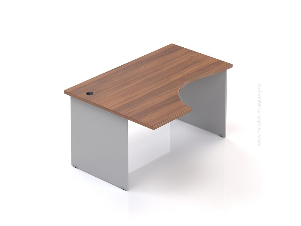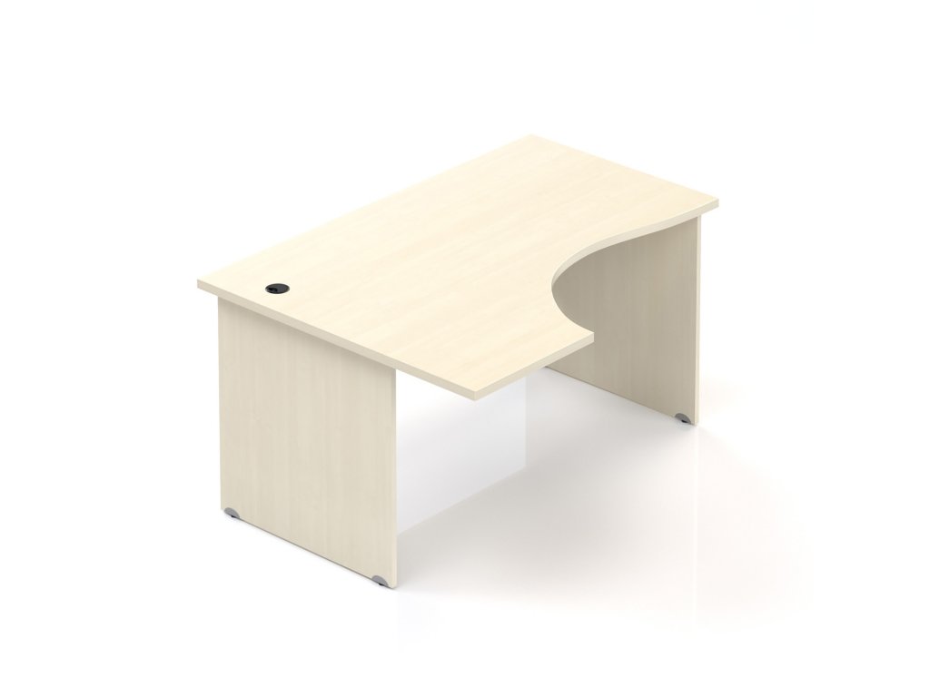 Kvalitní kancelářský stůl zátěžový. Vyroben z nejkvalitnějších materiálů. Dřevotříska je stlačena na nejsilnější možnou hustotu E1. Dvě kabelové průchodky zdarma. Díra na průchodky je již v ceně a je automaticky umístěna na stůl. Možnost vyrovnání podlahy pomocí rektifikace +- 1,5 cm. Na zátěžových místech je ABS hrana 2 mm na nezátěžových místech (lub stolu) je ABS hrana 1 mm. - Kancelářský rohový stůl levý Komfort, dřevěná podnož, 140x70/100x76 cm BKA19 12