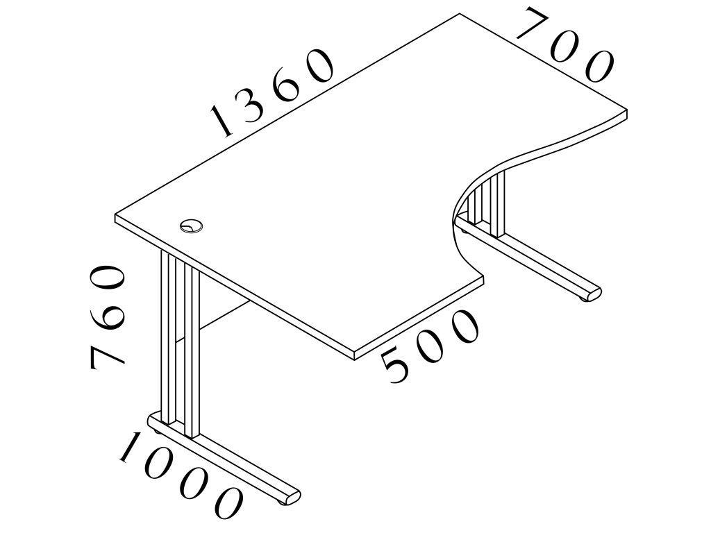 Kvalitní kancelářský stůl zátěžový. Vyroben z nejkvalitnějších materiálů. Dřevotříska je stlačena na nejsilnější možnou hustotu E1. Dvě kabelové průchodky zdarma. Díra na průchodky je již v ceně a je automaticky umístěna na stůl. Možnost vyrovnání podlahy pomocí rektifikace +- 1,5 cm. Na zátěžových místech je ABS hrana 2 mm na nezátěžových místech (lub stolu) je ABS hrana 1 mm. - Kancelářský stůl rohový levý Komfort, kovová podnož, 140x70/100x76 cm BPR19 12