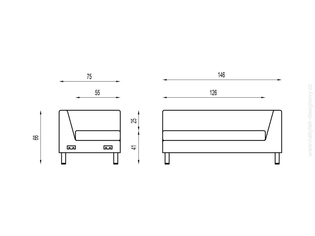 dvoumístné luxustní sofa pro rohové sestavy (P/L), určené pro kancelářské a komerční prostory