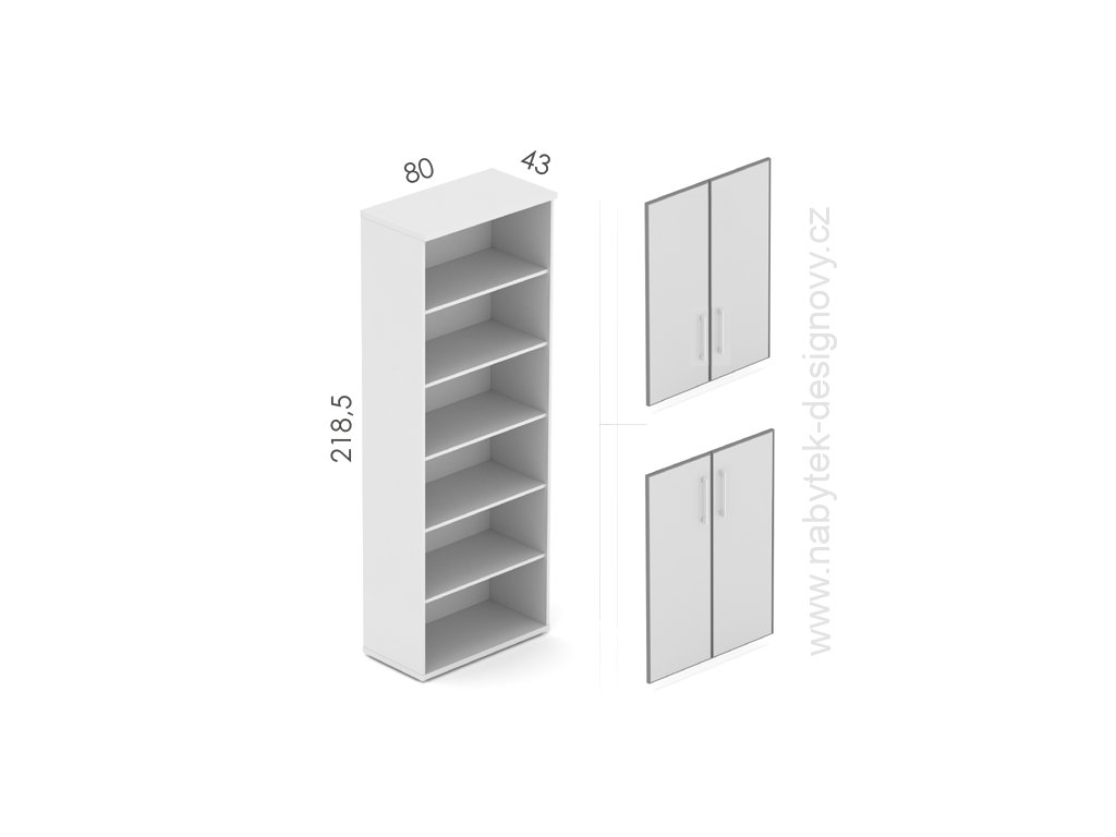 Kancelářská skříň s 6 policemi a volitelnými skleněnými dveřmi, výškou 218,5cm a šířkou 80cm