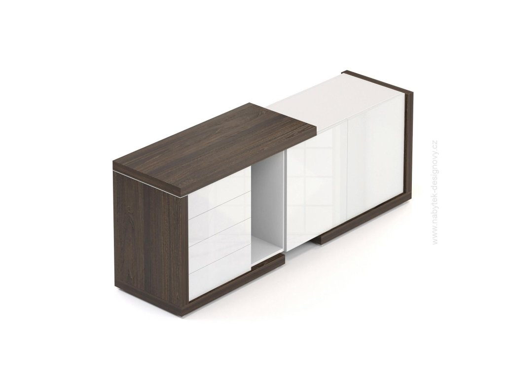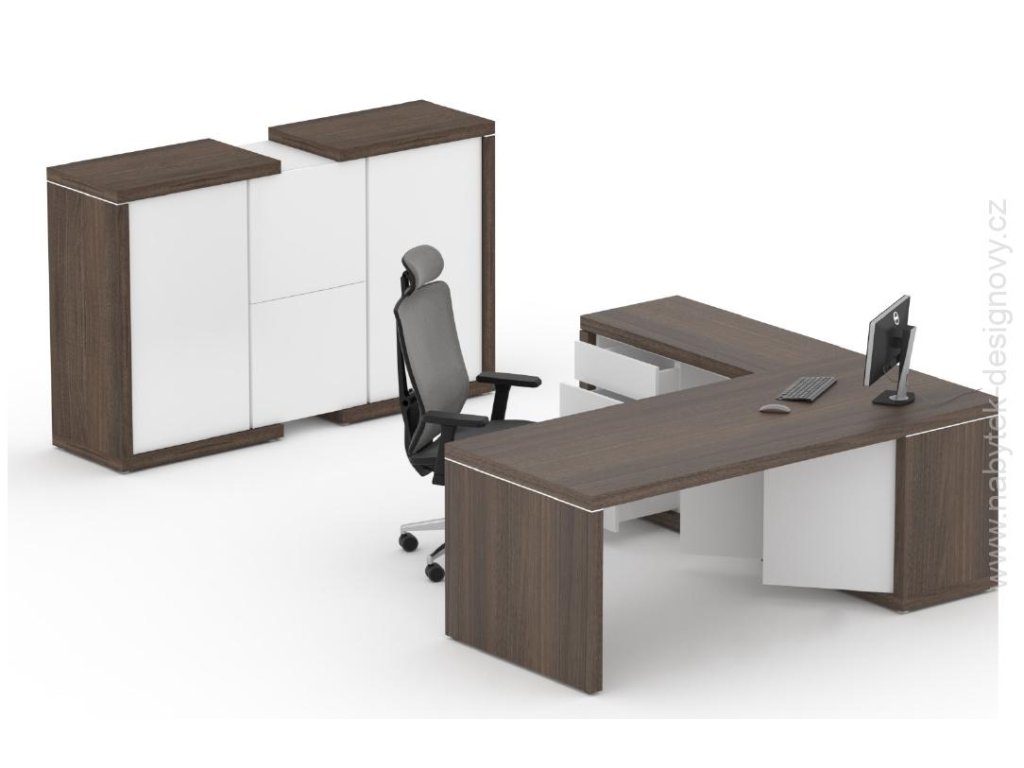 Tato sestava obsahuje: 1) Varianta stolu v délce 160cm, komody v L/P variantě a skříně 1x Manažerský opěrný stůl SOLID DLB16851 1x Komoda SOLID pro manažerský opěrný stůl DLKB173 (L/P variantu zvolte ve výběru variant výše) 1x Manažerská skříň SOLID DL31931 1) Varianta stolu v délce 180cm, komody v L/P variantě a skříně 1x Manažerský opěrný stůl SOLID DLB18851 1x Komoda SOLID pro manažerský opěrný stůl DLKB173 (L/P variantu zvolte ve výběru variant výše) 1x Manažerská skříň SOLID DL31931 1) Varianta stolu v délce 200cm, komody v L/P variantě a skříně 1x Manažerský opěrný stůl SOLID DLB20851 1x Komoda SOLID pro manažerský opěrný stůl DLKB173 (L/P variantu zvolte ve výběru variant výše) 1x Manažerská skříň SOLID DL31931 Manažerská sestava stolu s komodou a skříní SOLID Z22, volitelná délka stolu 160/180/200cm Manažerský nábytek SOLID . Základem jsou modely manžerských stolů a šatních skříní na ostrých, futuristických a pevných liniích. Je minimalistický, forma harmonizuje s nejvyšší kvalitou komponentů, jako jsou nábytkové desky s přírodní strukturou dřeva, vysoce lesklé akrylové desky, dvoustupňové ozdobné lemovky popřípadě chromové prvky. Kolekce SOLID je určena k aranžování manažerské kanceláře s nejvyšším standardem. Pracovní prostor manažera (archivy, konferenční stoly, odpočinkový prostor) tvoří ucelený celek. Vizuálně masivní manažerské stoly s charakteristickými nohami ve tvaru L, tvoří vynikající sestavu s dvoukonstrukčními skříněmi. Skříně a komody byly připravené v asi tuctu různých variant: uzavřené, částečně otevřené, uzavřené s výklopnými čely nebo se zásuvkami. Jsou k dispozici v mnoha velikostech pro snazší uspořádání každého manažerského prostoru. Stanou se ozdobou místa, kde jsou umístěny, a to jak díky své vynikající designové linii, tak i dostupným povrchovým úpravám. Kontrastní kombinace jednobarevných lamin s dřevěnými dekory zdůrazňují moderní design kolekce a umožňuje vám sladit barvy s designem vašeho interiéru. Manažerská sestava stolu s komodou a skříní SOLID Z22, volitelná délka stolu 160/180/200cm Manažerská sestava stolu s komodou a skříní SOLID Z22, volitelná délka stolu 160/180/200cm patří do kolekce SOLID, která spojuje eleganci a profesionální vzhled s vysokou funkčností. Tento nábytek je navržen pro manažerské kanceláře a reprezentativní prostory, kde je kladen důraz na kvalitu a styl. S precizním zpracováním a použitím prvotřídních materiálů SOLID zajišťuje dlouhou životnost a odolnost. Kolekce se vyznačuje čistými liniemi, moderním designem a možností volby z různých povrchových úprav a barevných kombinací.
