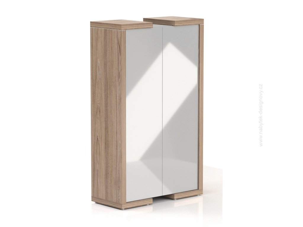 Manažerská skříň SOLID, 2 dvéřová, policová (5 pater polic v obou sekcích), výška 187,6cm, délka 111,2cm Manažerský nábytek SOLID . Základem jsou modely manžerských stolů a šatních skříní na ostrých, futuristických a pevných liniích. Je minimalistický, forma harmonizuje s nejvyšší kvalitou komponentů, jako jsou nábytkové desky s přírodní strukturou dřeva, vysoce lesklé akrylové desky, dvoustupňové ozdobné lemovky popřípadě chromové prvky. Kolekce SOLID je určena k aranžování manažerské kanceláře s nejvyšším standardem. Pracovní prostor manažera (archivy, konferenční stoly, odpočinkový prostor) tvoří ucelený celek. Vizuálně masivní manažerské stoly s charakteristickými nohami ve tvaru L, tvoří vynikající sestavu s dvoukonstrukčními skříněmi. Skříně a komody byly připravené v asi tuctu různých variant: uzavřené, částečně otevřené, uzavřené s výklopnými čely nebo se zásuvkami. Jsou k dispozici v mnoha velikostech pro snazší uspořádání každého manažerského prostoru. Stanou se ozdobou místa, kde jsou umístěny, a to jak díky své vynikající designové linii, tak i dostupným povrchovým úpravám. Kontrastní kombinace jednobarevných lamin s dřevěnými dekory zdůrazňují moderní design kolekce a umožňuje vám sladit barvy s designem vašeho interiéru. Manažerská skříň SOLID, 2 dvéřová, policová (5 pater polic v obou sekcích), výška 187,6cm, délka 111,2cm Manažerská skříň SOLID, 2 dvéřová, policová (5 pater polic v obou sekcích), výška 187,6cm, délka 111,2cm patří do kolekce SOLID, která spojuje eleganci a profesionální vzhled s vysokou funkčností. Tento nábytek je navržen pro manažerské kanceláře a reprezentativní prostory, kde je kladen důraz na kvalitu a styl. S precizním zpracováním a použitím prvotřídních materiálů SOLID zajišťuje dlouhou životnost a odolnost. Kolekce se vyznačuje čistými liniemi, moderním designem a možností volby z různých povrchových úprav a barevných kombinací.