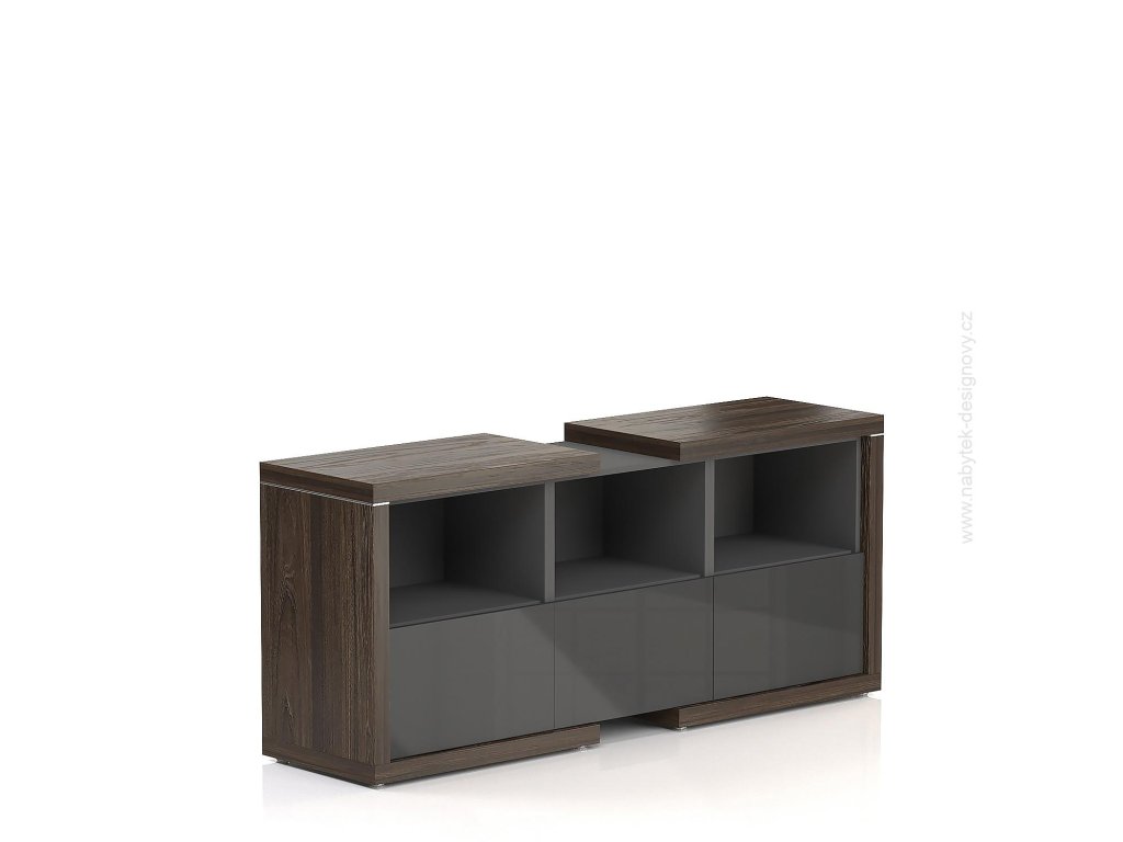 Manažerská skříň SOLID, 3 zásuvky, 3 police, výška 83,5cm, délka 191,2cm Manažerský nábytek SOLID . Základem jsou modely manžerských stolů a šatních skříní na ostrých, futuristických a pevných liniích. Je minimalistický, forma harmonizuje s nejvyšší kvalitou komponentů, jako jsou nábytkové desky s přírodní strukturou dřeva, vysoce lesklé akrylové desky, dvoustupňové ozdobné lemovky popřípadě chromové prvky. Kolekce SOLID je určena k aranžování manažerské kanceláře s nejvyšším standardem. Pracovní prostor manažera (archivy, konferenční stoly, odpočinkový prostor) tvoří ucelený celek. Vizuálně masivní manažerské stoly s charakteristickými nohami ve tvaru L, tvoří vynikající sestavu s dvoukonstrukčními skříněmi. Skříně a komody byly připravené v asi tuctu různých variant: uzavřené, částečně otevřené, uzavřené s výklopnými čely nebo se zásuvkami. Jsou k dispozici v mnoha velikostech pro snazší uspořádání každého manažerského prostoru. Stanou se ozdobou místa, kde jsou umístěny, a to jak díky své vynikající designové linii, tak i dostupným povrchovým úpravám. Kontrastní kombinace jednobarevných lamin s dřevěnými dekory zdůrazňují moderní design kolekce a umožňuje vám sladit barvy s designem vašeho interiéru. Manažerská skříň SOLID, 3 zásuvky, 3 police, výška 83,5cm, délka 191,2cm Manažerská skříň SOLID, 3 zásuvky, 3 police, výška 83,5cm, délka 191,2cm patří do kolekce SOLID, která spojuje eleganci a profesionální vzhled s vysokou funkčností. Tento nábytek je navržen pro manažerské kanceláře a reprezentativní prostory, kde je kladen důraz na kvalitu a styl. S precizním zpracováním a použitím prvotřídních materiálů SOLID zajišťuje dlouhou životnost a odolnost. Kolekce se vyznačuje čistými liniemi, moderním designem a možností volby z různých povrchových úprav a barevných kombinací.
