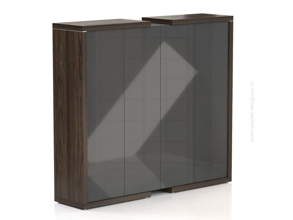 Manažerská skříň SOLID, 4 dvéřová, policová (5 pater polic ve všech sekcích), výška 187,6cm, délka 211,2cm Manažerský nábytek SOLID . Základem jsou modely manžerských stolů a šatních skříní na ostrých, futuristických a pevných liniích. Je minimalistický, forma harmonizuje s nejvyšší kvalitou komponentů, jako jsou nábytkové desky s přírodní strukturou dřeva, vysoce lesklé akrylové desky, dvoustupňové ozdobné lemovky popřípadě chromové prvky. Kolekce SOLID je určena k aranžování manažerské kanceláře s nejvyšším standardem. Pracovní prostor manažera (archivy, konferenční stoly, odpočinkový prostor) tvoří ucelený celek. Vizuálně masivní manažerské stoly s charakteristickými nohami ve tvaru L, tvoří vynikající sestavu s dvoukonstrukčními skříněmi. Skříně a komody byly připravené v asi tuctu různých variant: uzavřené, částečně otevřené, uzavřené s výklopnými čely nebo se zásuvkami. Jsou k dispozici v mnoha velikostech pro snazší uspořádání každého manažerského prostoru. Stanou se ozdobou místa, kde jsou umístěny, a to jak díky své vynikající designové linii, tak i dostupným povrchovým úpravám. Kontrastní kombinace jednobarevných lamin s dřevěnými dekory zdůrazňují moderní design kolekce a umožňuje vám sladit barvy s designem vašeho interiéru. Manažerská skříň SOLID, 4 dvéřová, policová (5 pater polic ve všech sekcích), výška 187,6cm, délka 211,2cm Manažerská skříň SOLID, 4 dvéřová, policová (5 pater polic ve všech sekcích), výška 187,6cm, délka 211,2cm patří do kolekce SOLID, která spojuje eleganci a profesionální vzhled s vysokou funkčností. Tento nábytek je navržen pro manažerské kanceláře a reprezentativní prostory, kde je kladen důraz na kvalitu a styl. S precizním zpracováním a použitím prvotřídních materiálů SOLID zajišťuje dlouhou životnost a odolnost. Kolekce se vyznačuje čistými liniemi, moderním designem a možností volby z různých povrchových úprav a barevných kombinací.
