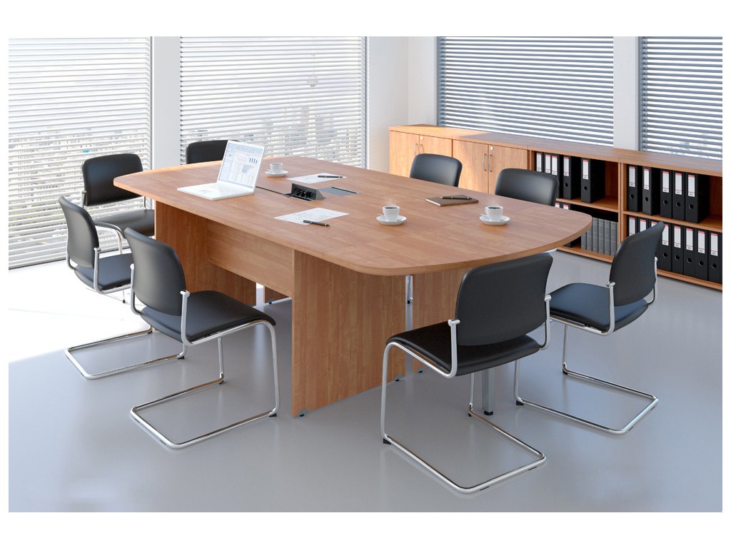 8 prvků v sestavě. 2x SKA24 11 - Konferenční stůl (140x70x76 cm) 2x PR71 11 - Zakončovací prvek (140x50x76 cm) 2x SB282 11 - Přístavná nízká skříň s dvířky (80x38,5x76 cm) 2x SB280 11 - Skříň nízká (80x38,5x76 cm) - Sestava kancelářského nábytku Komfort 8 buk R111008 11