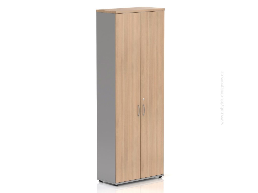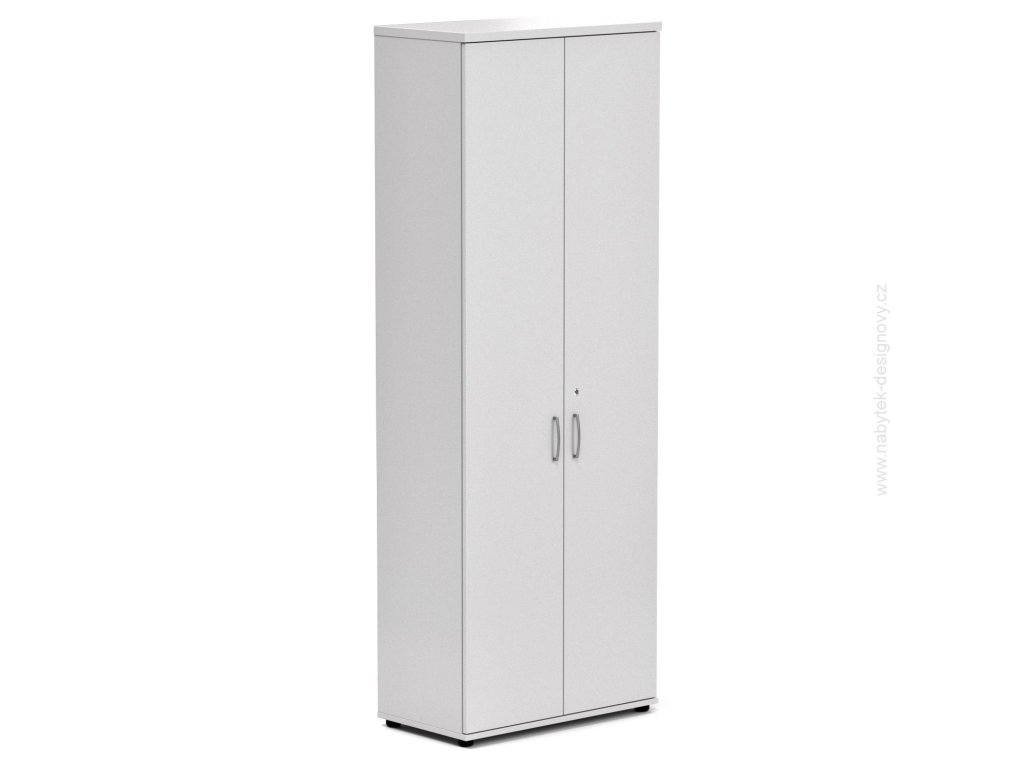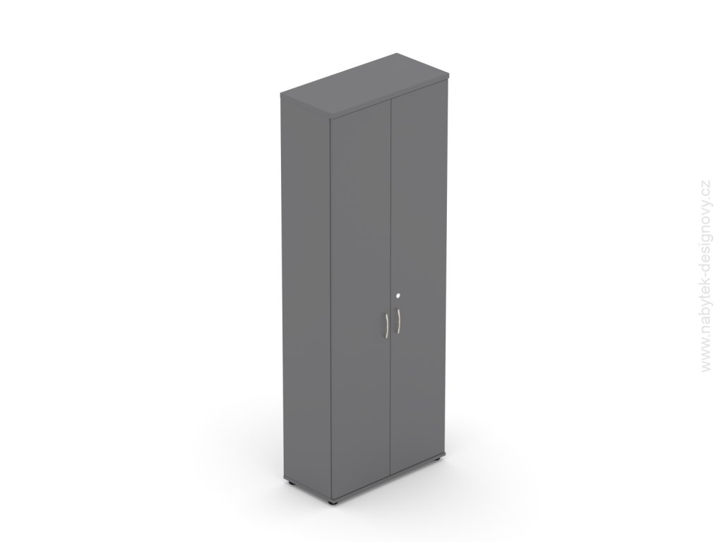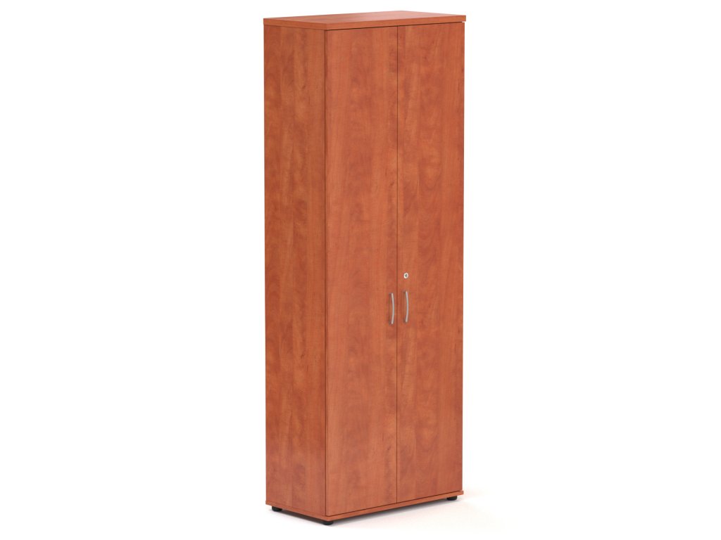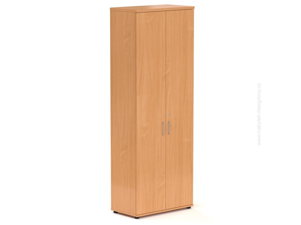 Kvalitní kancelářská skříň. Vyroben z nejkvalitnějších materiálů. Dřevotříska je stlačena na nejsilnější možnou hustotu E1. Možnost vyrovnání podlahy pomocí rektifikace +- 1,5 cm. Na zátěžových místech je ABS hrana 2 mm na nezátěžových místech je ABS hrana 1 mm. - Kancelářská skříň Komfort, 80x38,5x218,5 cm, dveře 5/5 S686 03