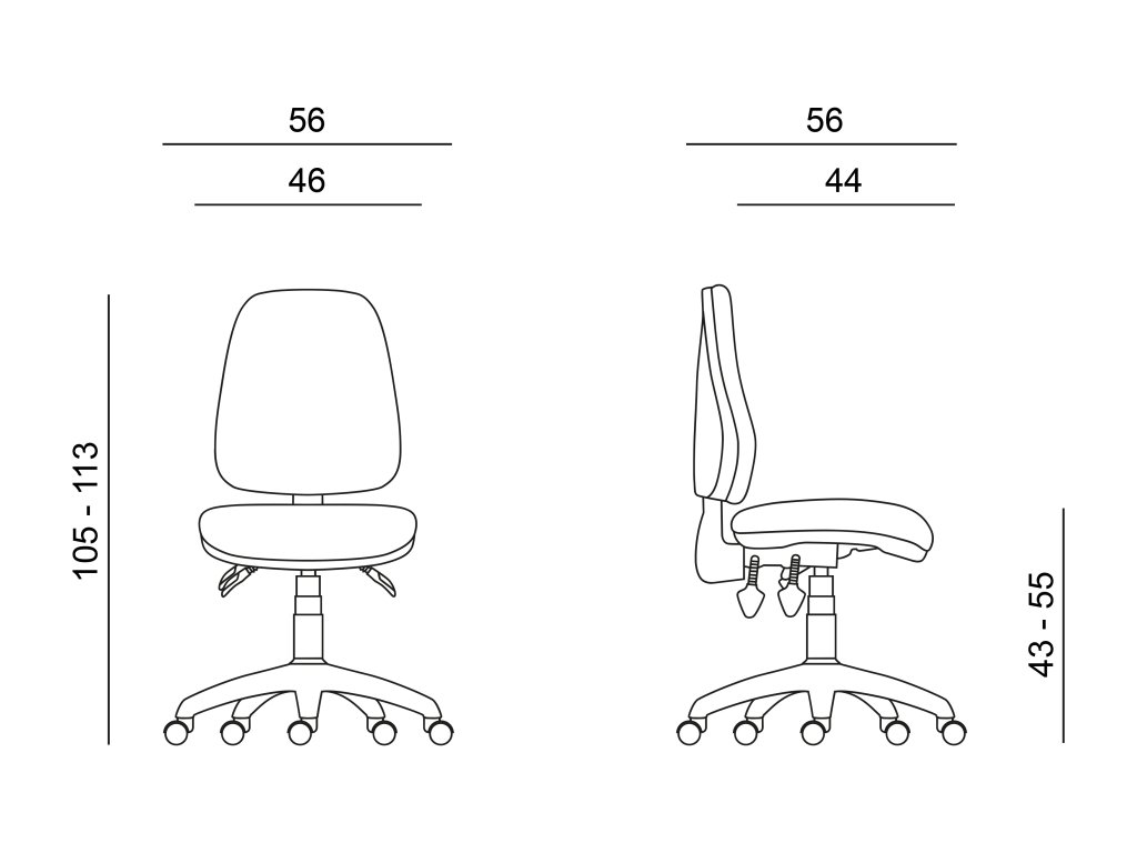 Celkový rozměr židle v x š x h: | 105-113 x 56 x 56 cm |