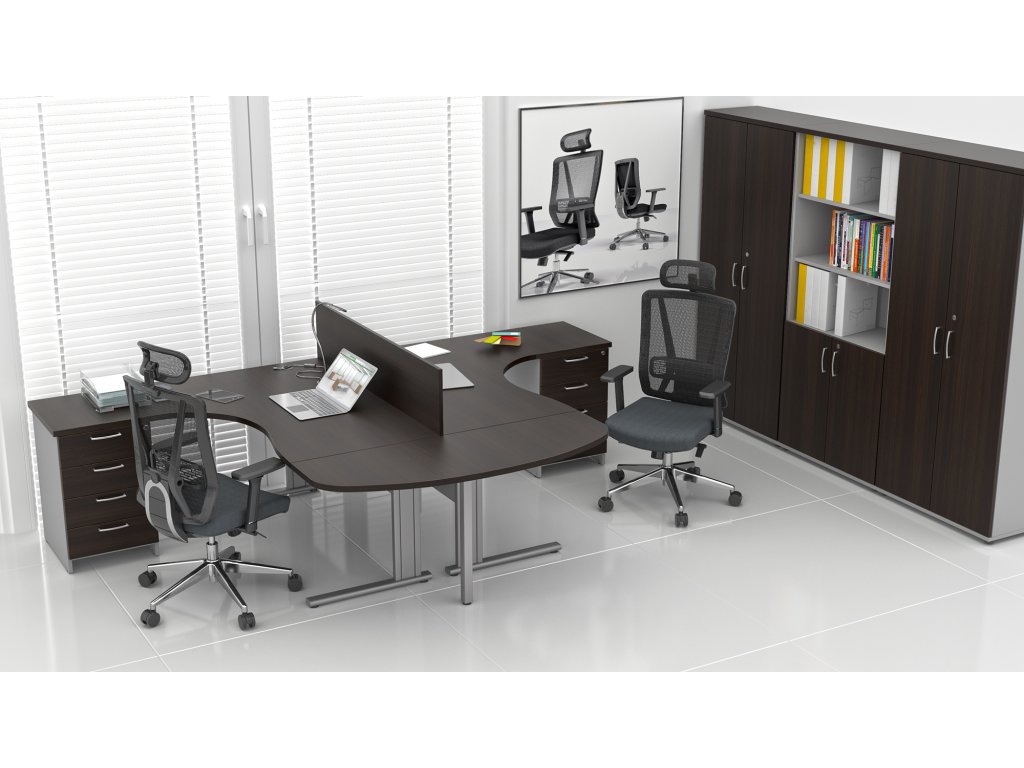 ZEP 2.12P 07 - Sestava kancelářského nábytku Komfort 2.12, kaštan/šedá